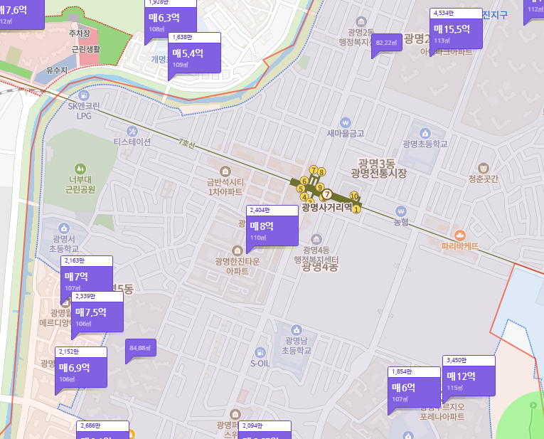 - 주변 호가 광명푸르지오포레나 59제곱 11억 광명센트럴아이파크 59제곱 12억~13억